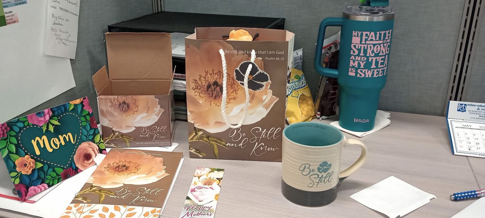 I’m very satisfied with my products all the time my last product I ordered was two orders of Be Still and know beautiful mugs gift box and two journals be still, and know! My daughter appreciated her for Mother’s Day present and one of her best friends at her work that I know was so pleased with her. She sent me something on Facebook about it.