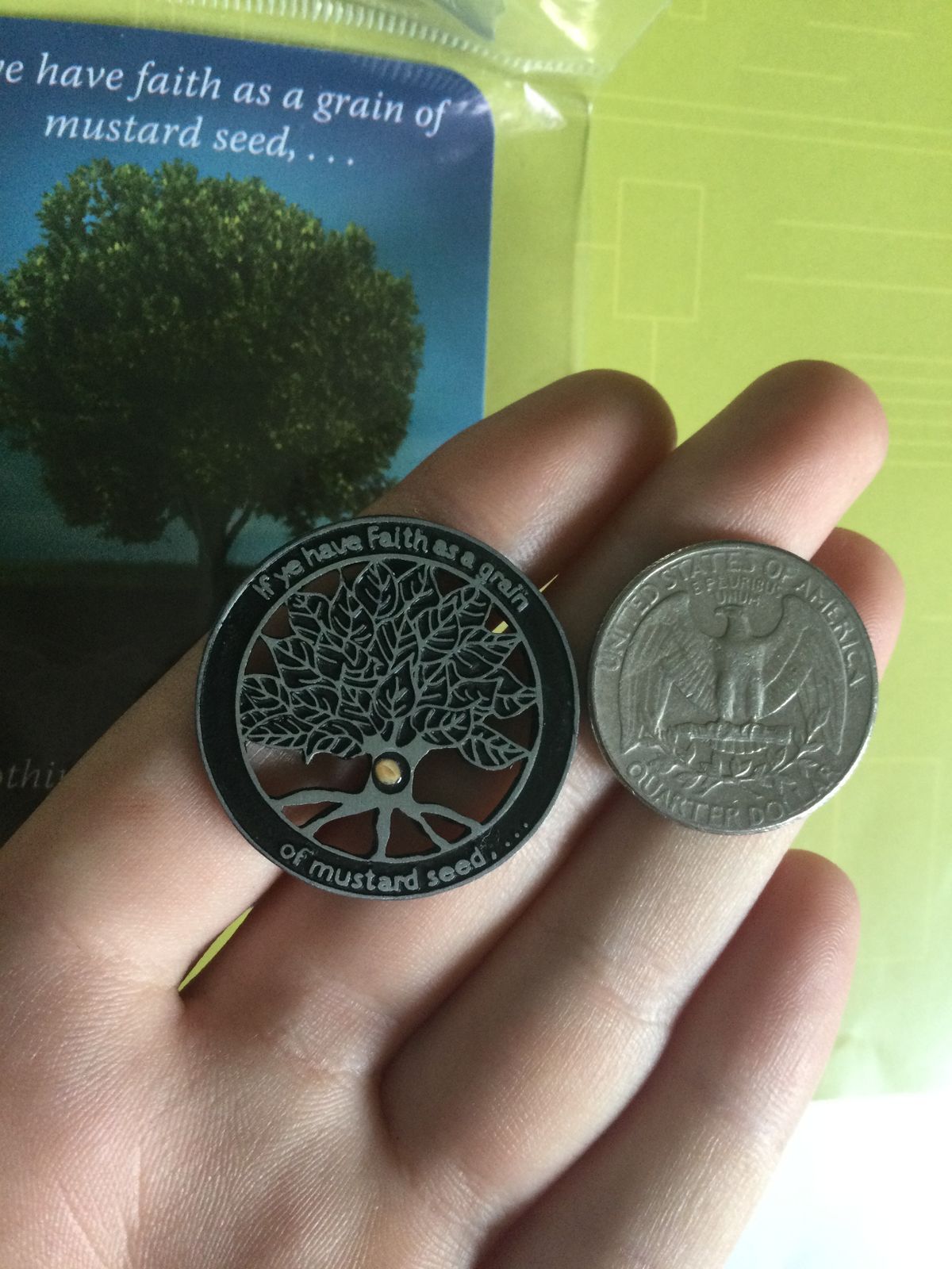 Learn MorePocket piece with real mustard seed permanently secured is pewter-finished. Both pocket piece and card feature Matthew 17:20, If ye have faith as a grain of mustard seed… nothing shall be impossible unto you. (KJV). An easy way to 'keep the faith' all year long or use to encourage someone else with this gift!